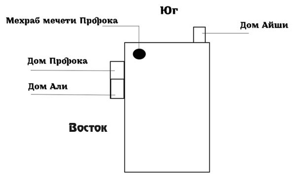 Дом Пророка (С) находился в восточной части мечети. Самым близким к нему был дом Али (А) и Фатимы (А):